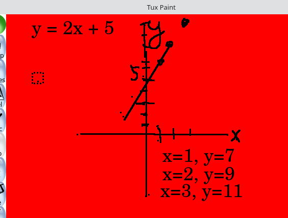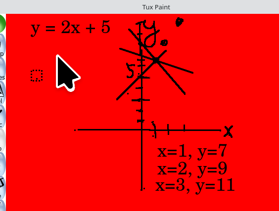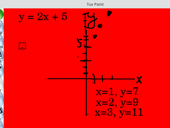 Now we must randomly select a straight line that crosses our S. Let’s use y = 2x + 5. It could be another random straight line as well, like 3x + 5. This is the equation about the slop of straight line. y = mx + b